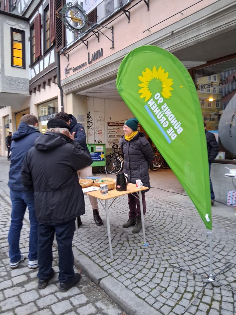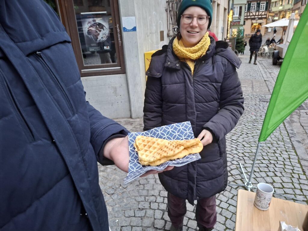 Am 28.11.2025 gab es einen Stand des Stadtvorstands auf dem Tübinger Marktplatz. Es gab Waffeln, Punsch und angenehme Gespräche. Aufgrund des grauen Wetters und dem Aufbau der Chocolat war der Stand nicht so stark besucht wie erhofft. Der Stand wurde gut angenommen und es gab interessanten Austausch mit Tübingerinnen und Tübingern, Grünen Mitgliedern und Gästen in der Stadt.